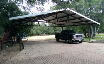 На готовые опоры привариваем металлические лаги, на которые впоследствии монтируется профлист.